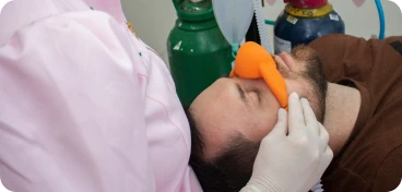 A sedação com óxido nitroso (gás do riso) é uma técnica usada principalmente em odontologia para reduzir ansiedade e medo. O paciente inala uma mistura de óxido nitroso e oxigênio por uma máscara nasal, permanecendo acordado, calmo e colaborativo, mas sem dor ou desconforto excessivo.