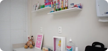 O consultório é pensado para que a criança se sinta segura, tranquila e confiante no atendimento.
